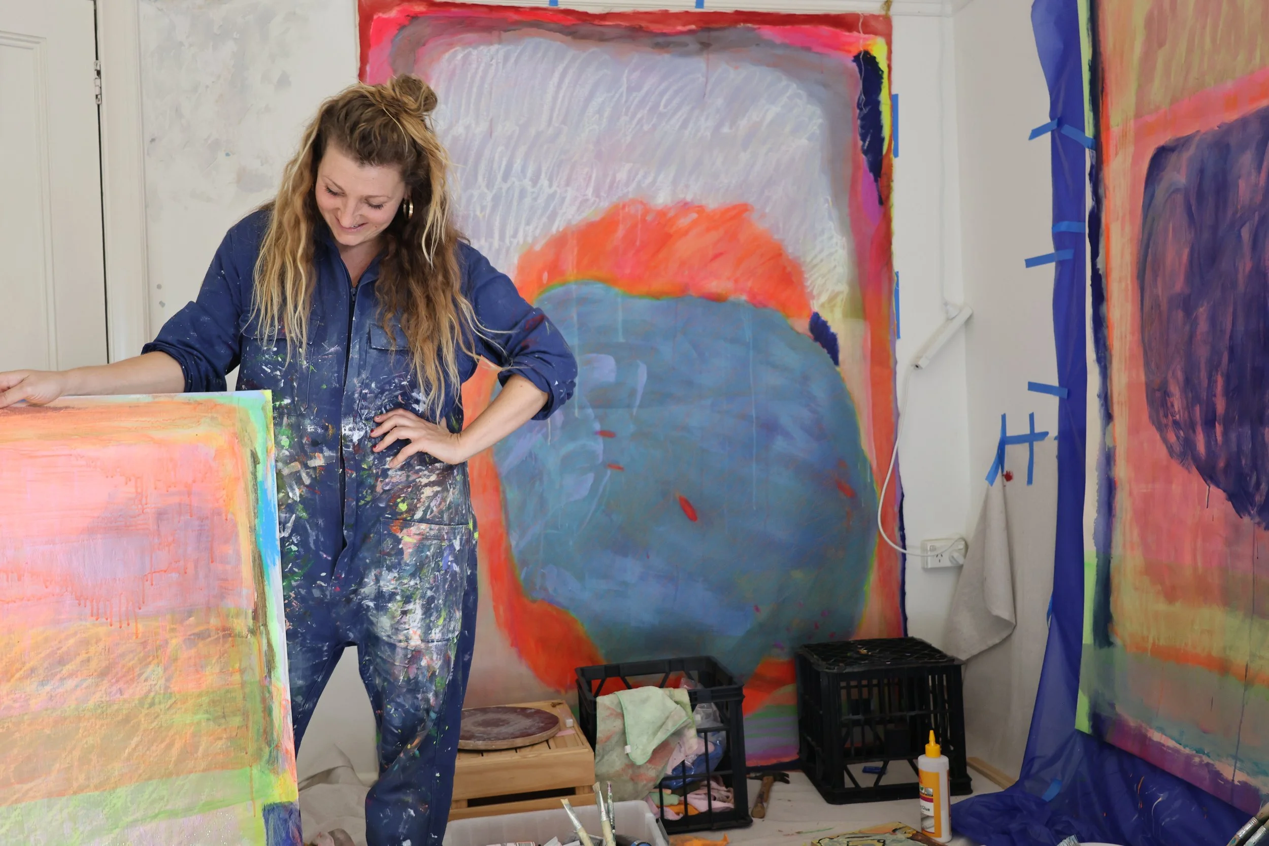 Giulia Corradi's practice utilises art as a form of self-care. Her creative process is driven by a desire to create based on instinct and impulse. Her paintings serve as abstract representations of personal moments, relationships, and life experiences.