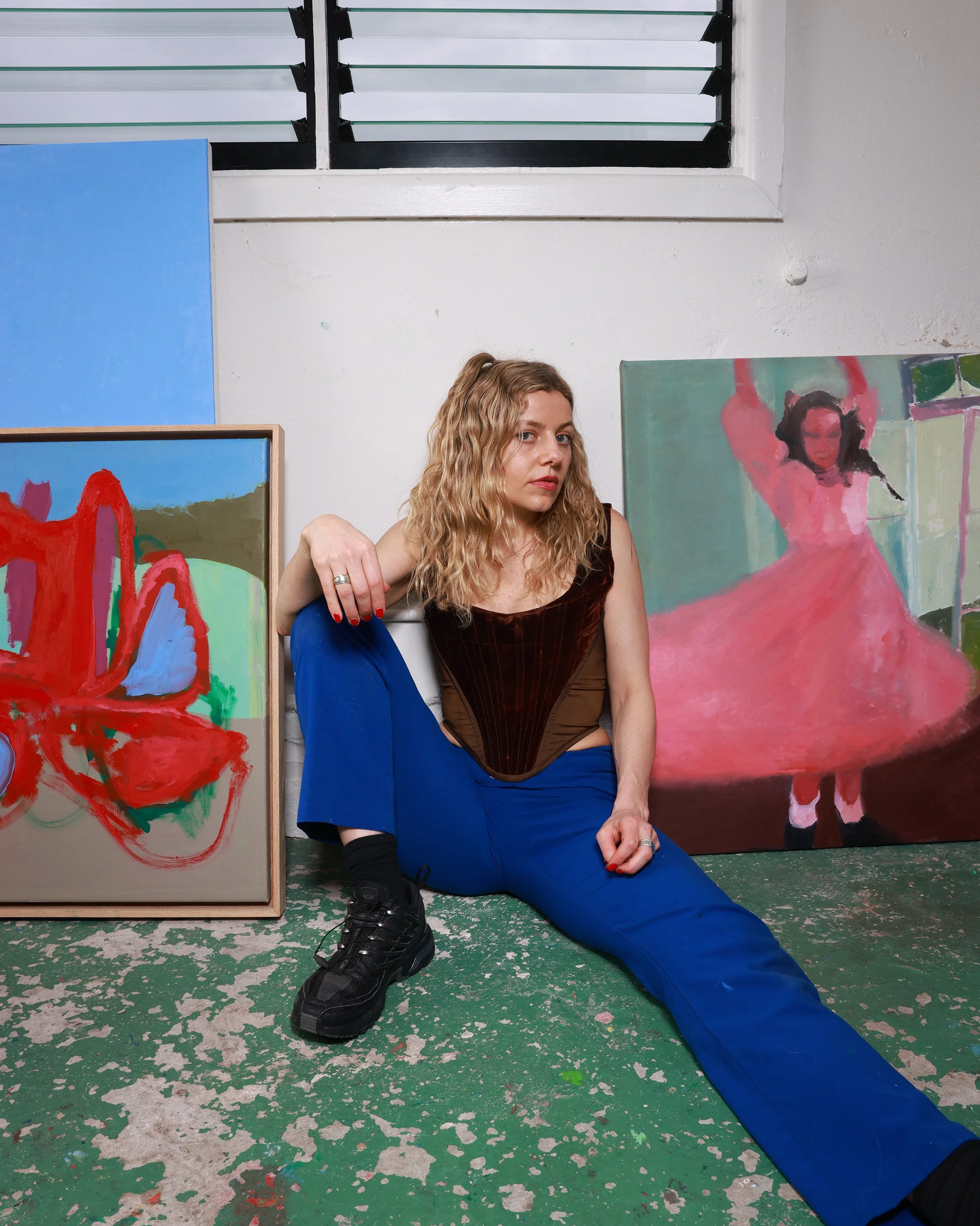 Ruby Yates (she/her) is an emerging artist originally from rural South Australia, Nukunu and Barngarla Country, Port Augusta. She is currently based on Kaurna Country, Adelaide, operating out of Switchboard Studios. Ruby holds a Bachelor of Contemporary Art and a Bachelor of Creative Arts (Honours), graduating from the University of South Australia in 2022. Working primarily with paint, unfolding the self plays a pivotal role in her practice, exploring themes of interconnectedness, relationships, and embodiment. Often ambiguous, her work fuses abstraction and tangibility, drawing from her interest in the theory of becoming.