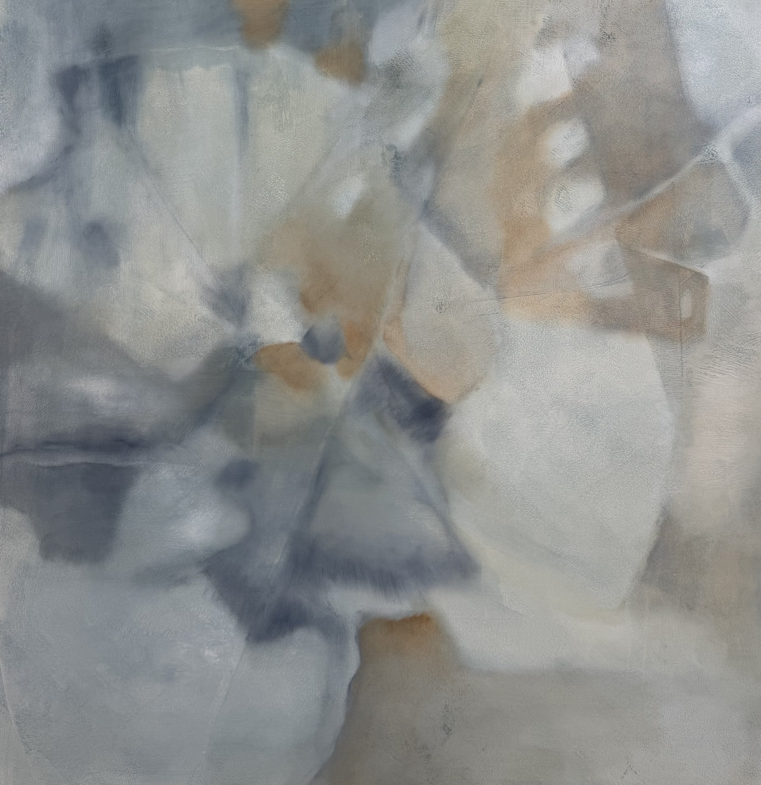 Working primarily with oil and ink on canvas, Brookman builds layered surfaces through gesture, wash, and slow accumulation. Her process is intuitive, allowing forms to surface gradually through cycles of addition and restraint. The paintings draw on fractal structures and recurring natural motifs, including river systems, wings, and lichen. Her work balances density and openness, creating atmospheric fields shaped by repetition and subtle tonal shifts that echo slow natural transformations.