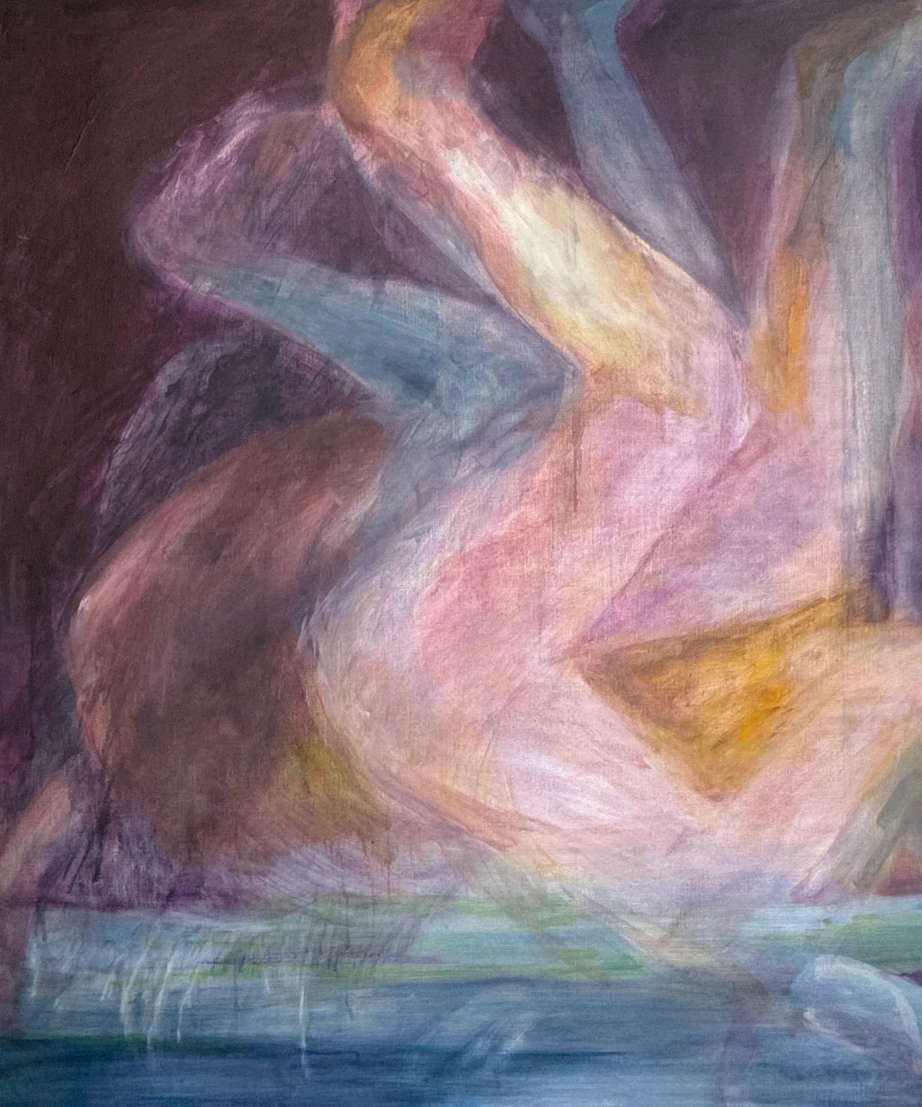 Emily Ebbs is a visual artist living and working on Gadigal land (Sydney), Australia. Her process-based practice is deeply rooted in evoking the emotional residue of memories through the technique of staining. Emily’s fluid stain paintings often on raw canvas to allow the paint to seep into the weaves of the fabric explore the stain of trauma that remains within the body. Drawn to the idea of the stain, something marked or discoloured that is difficult to remove. Ebbs explores its connection to emotional and psychological trauma. Each of her works functions as an innermost portrait, formed from lived experiences, observations, and imaginings spanning from childhood through to adulthood.