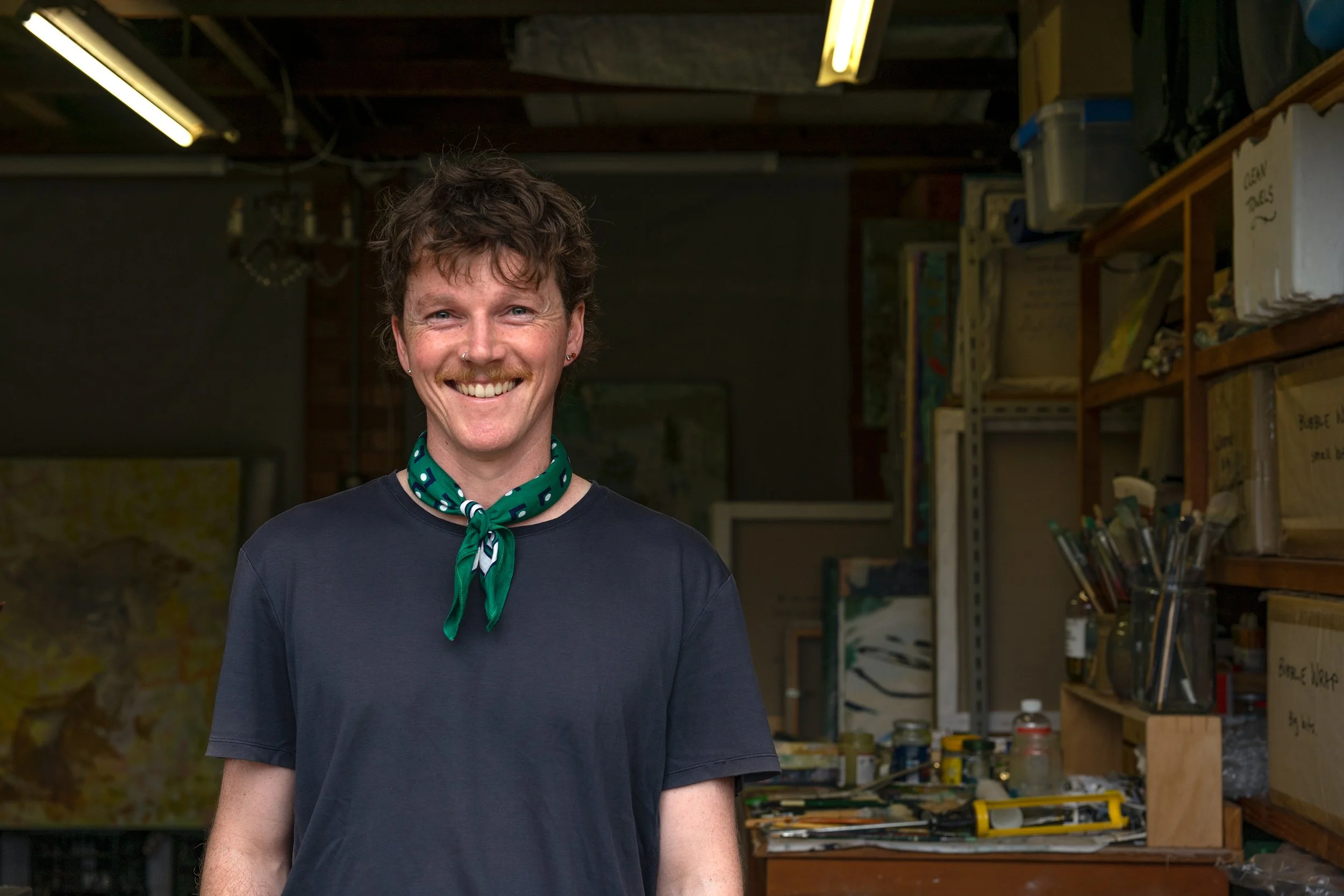 Nathan Andrew McCarthy is a visual artist based in Darlington, Sydney, Gadigal Country, whose practice is profoundly shaped by his childhood on the Coast of NSW, where he experienced a prolonged period of delayed English development. As a result, his work is born from intuition and varied forms of communication, including the private language he shared with his brother and his earliest communication through drawing and scribbles. This foundation in non-verbal expression informs his artistic process—an exploration of personal history using materials like oil sticks and collage to focus on ethereal figures suspended in natural landscapes, reflecting memory and the persistence of nature.