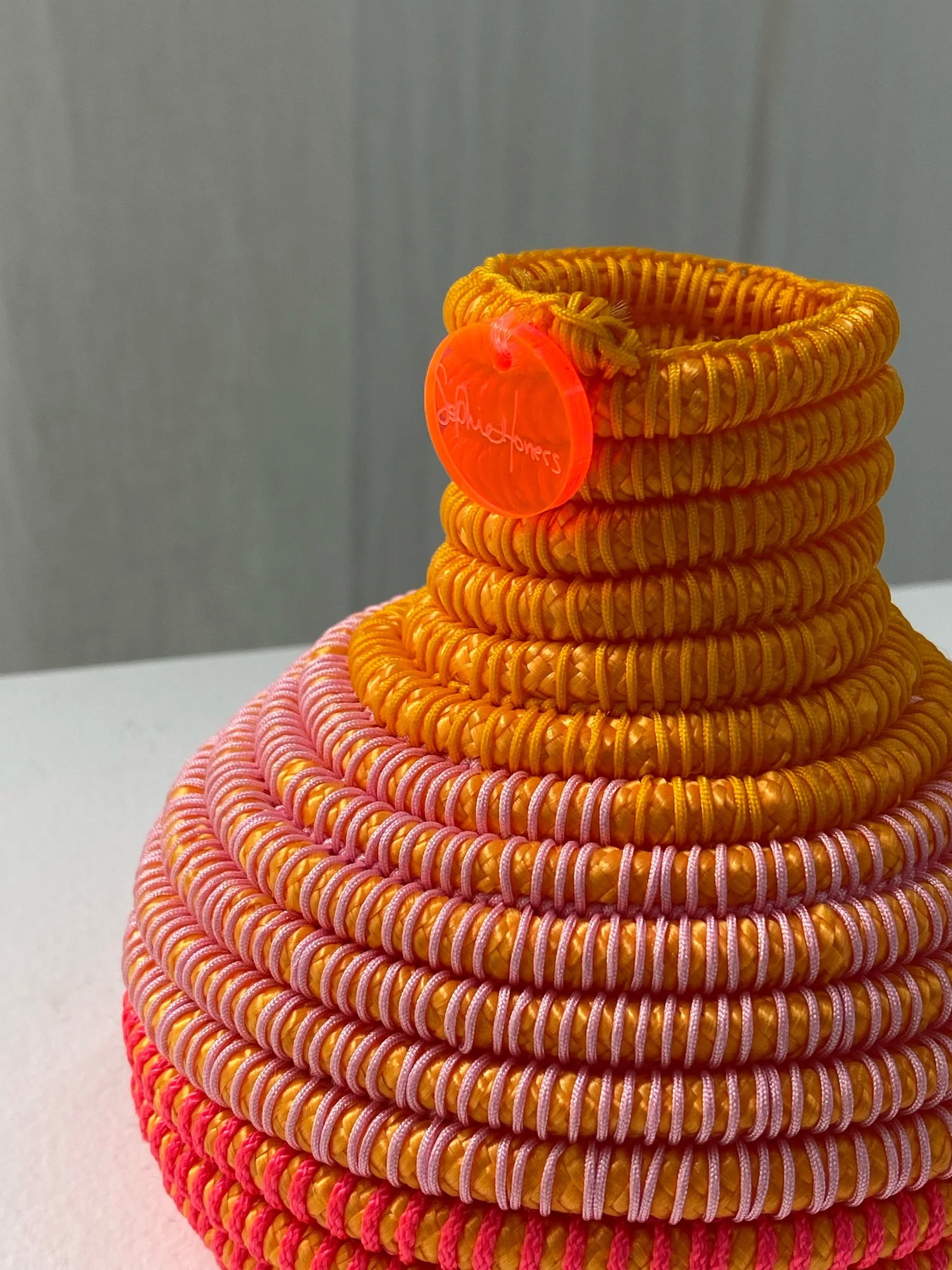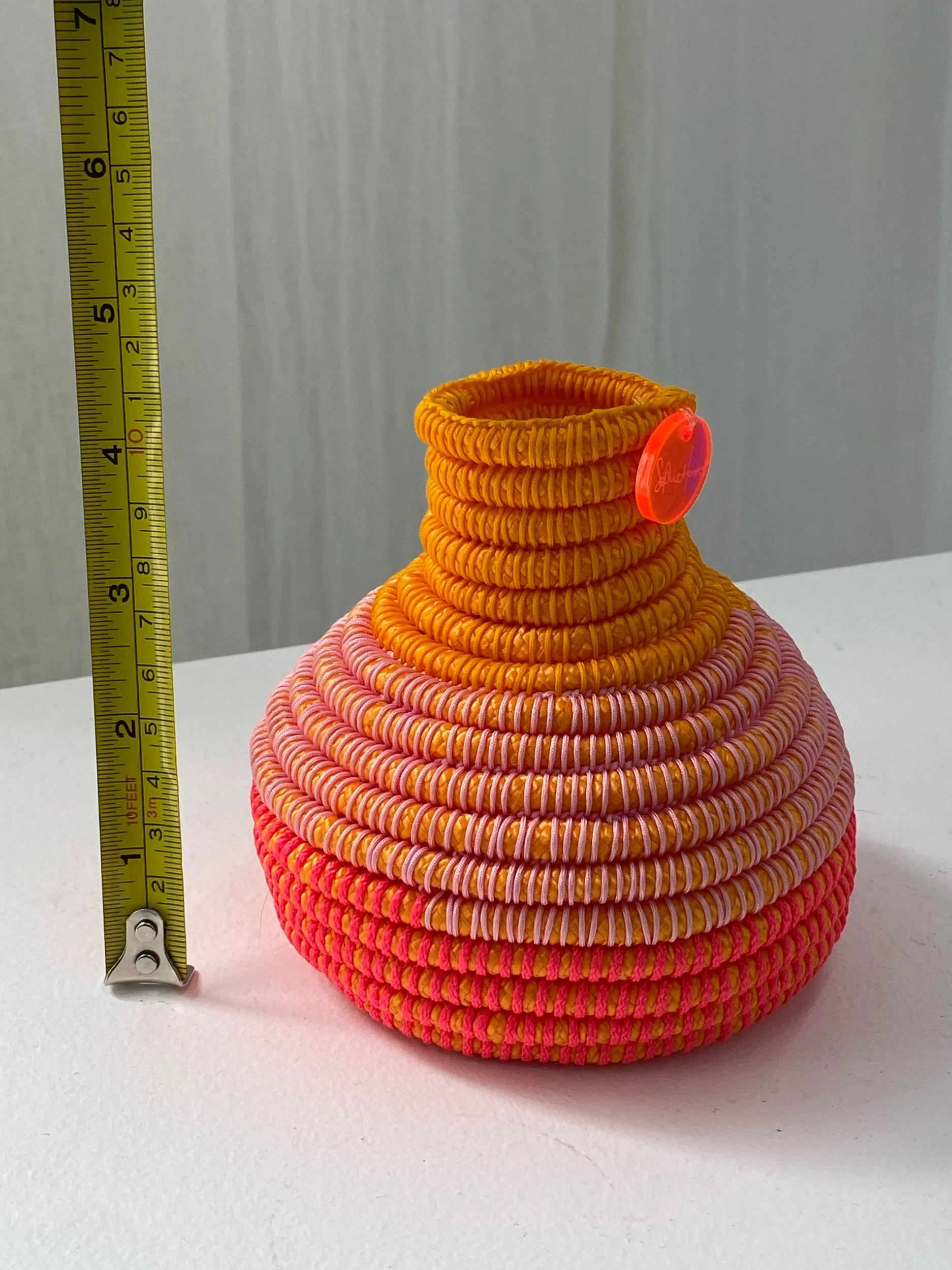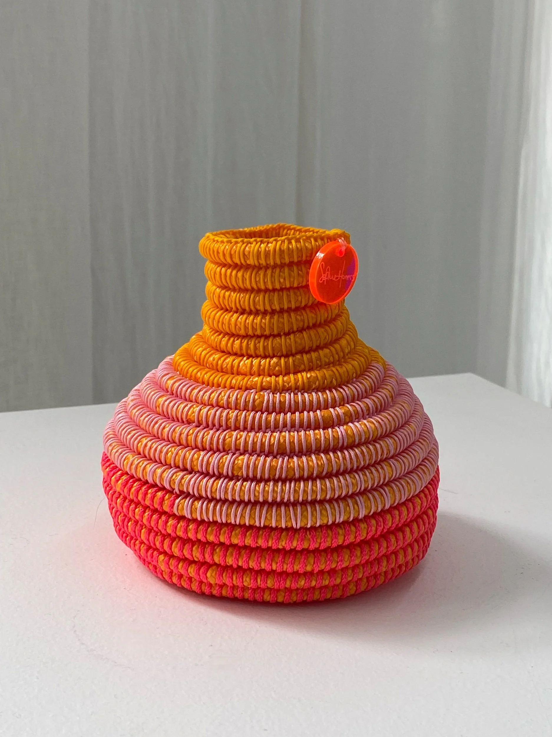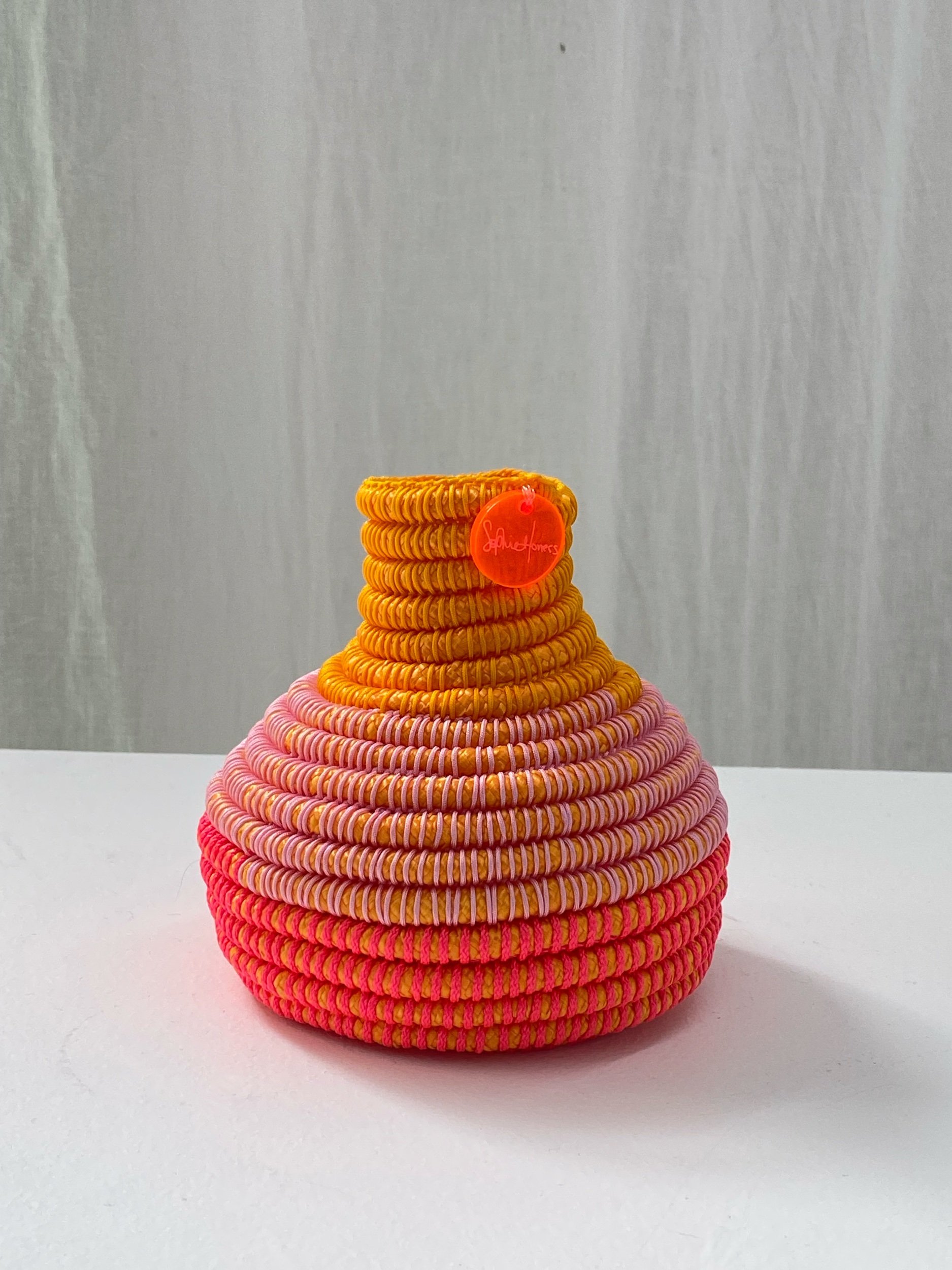 Objects & Books › Orange hand woven vessel by Sophie Honess Image 1 of 4 Image 2 of 4 Image 3 of 4 Image 4 of 4 Orange hand woven vessel by Sophie Honess $198.00 Small hand woven vessel by Gamilaroi Fibre/Textile artist Sophie Honess. See visual measurement for scale. Add To Cart Added! Small hand woven vessel by Gamilaroi Fibre/Textile artist Sophie Honess. See visual measurement for scale.
