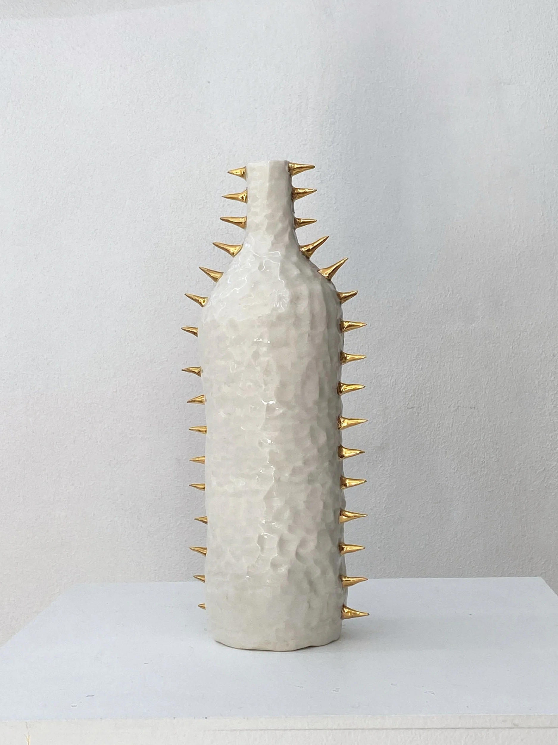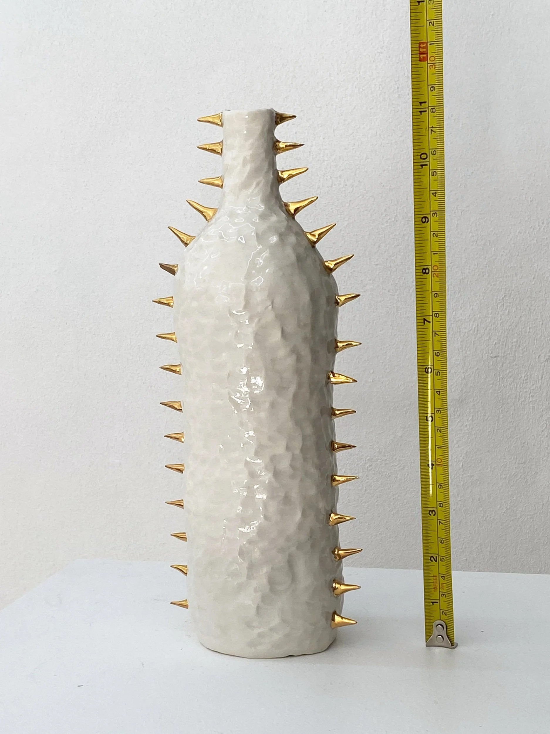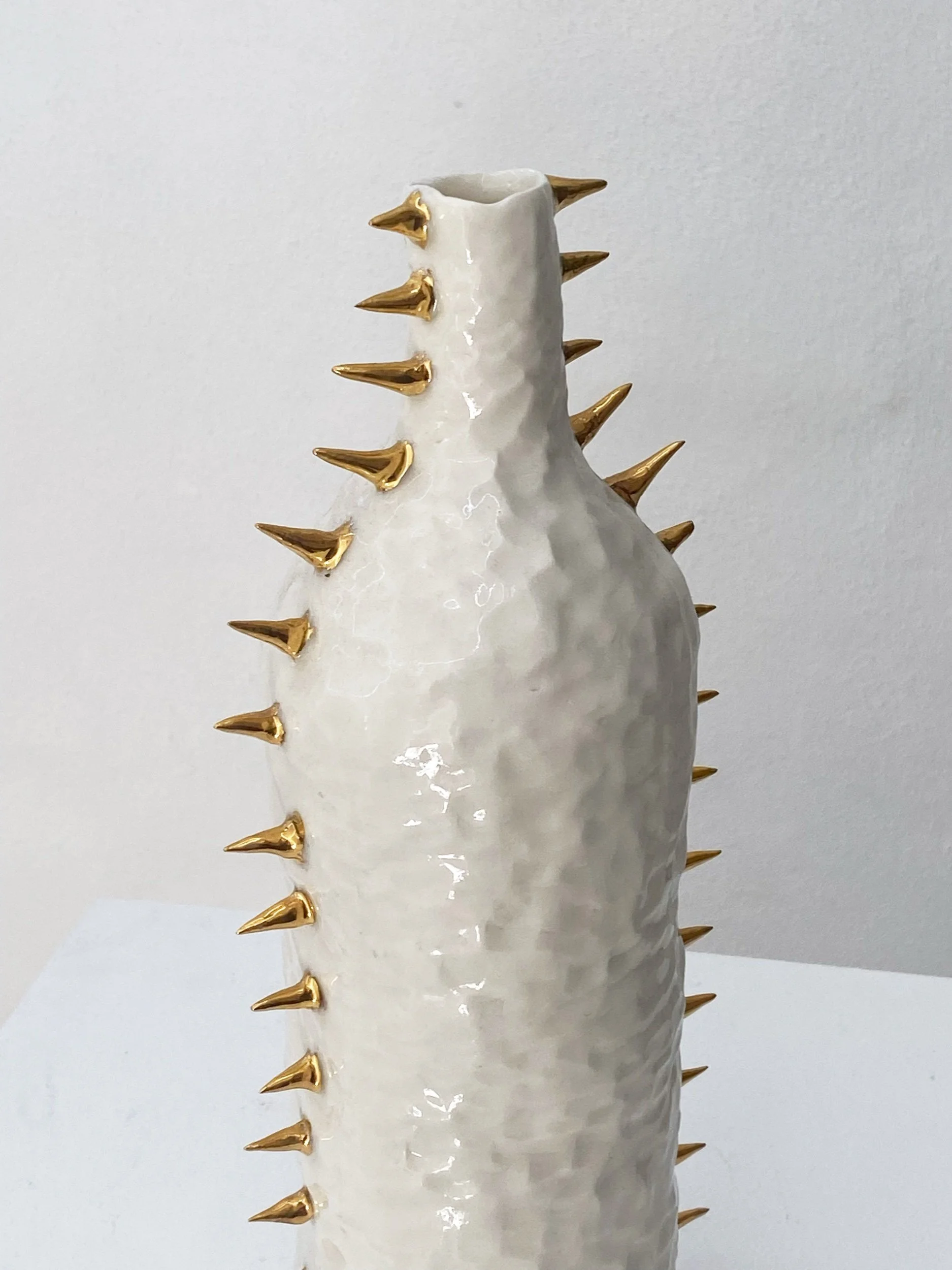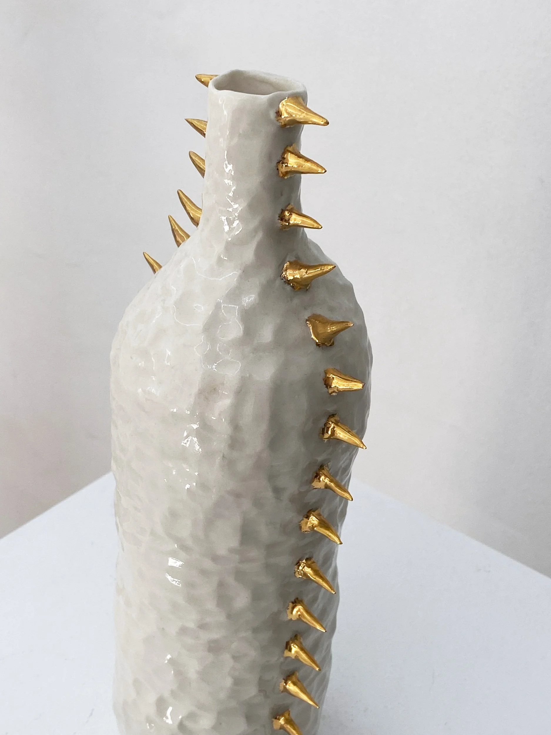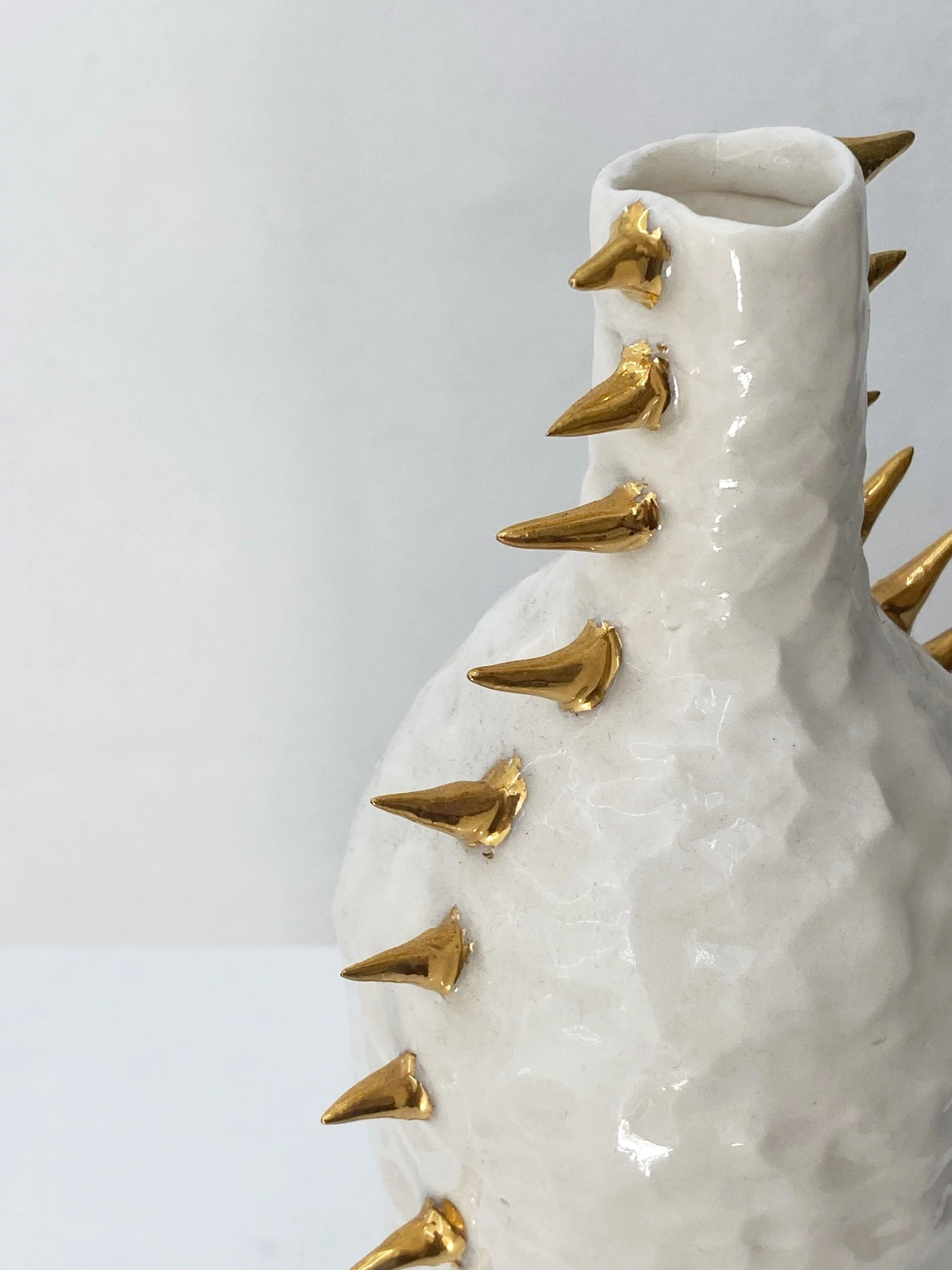 Objects & Books › Clay built spiked vessel by Caitlin Hurley Image 1 of 5 Image 2 of 5 Image 3 of 5 Image 4 of 5 Image 5 of 5 Clay built spiked vessel by Caitlin Hurley $330.00 Hand built vessel using clay and gold spikes by artist Caitlin Hurley.See visual measurement for scale. Add To Cart Added! Hand built vessel using clay and gold spikes by artist Caitlin Hurley.See visual measurement for scale.